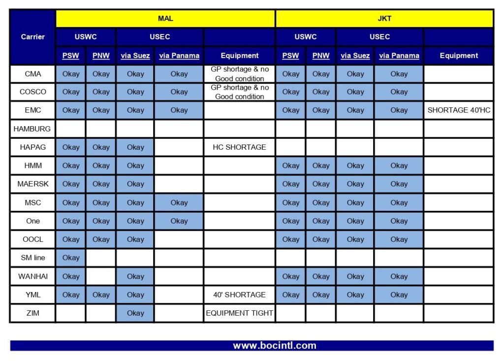 Please note: regardless of the status showing on the report, please reach out to your BOC Representative to discuss existing status. Space availability changes daily, even multiple times per day. This report is just a general guideline. We will always do everything we can to help you move your freight.