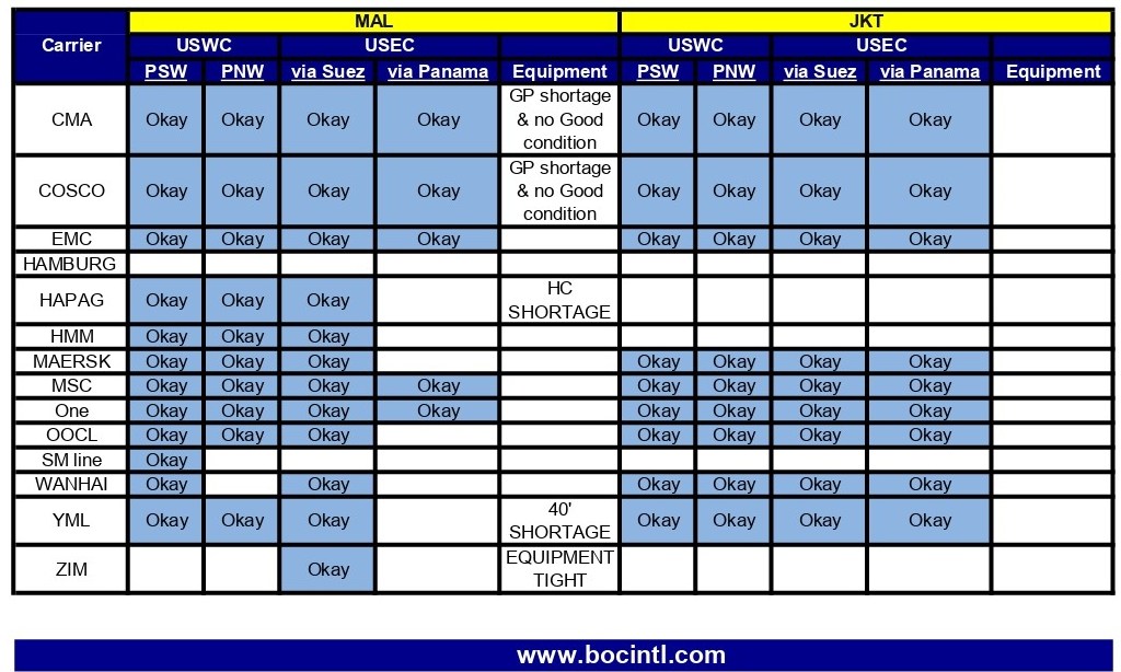 Please note: regardless of the status showing on the report, please reach out to your BOC Representative to discuss existing status. Space availability changes daily, even multiple times per day. This report is just a general guideline. We will always do everything we can to help you move your freight.