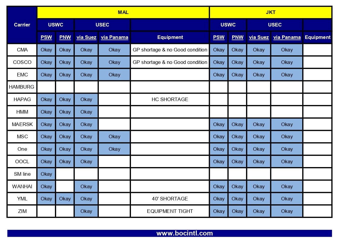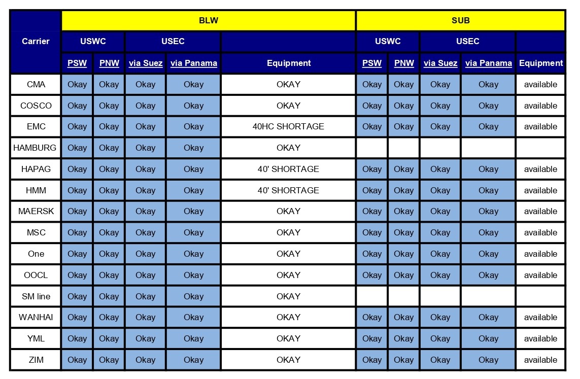 Please note: regardless of the status showing on the report, please reach out to your BOC Representative to discuss existing status. Space availability changes daily, even multiple times per day. This report is just a general guideline. We will always do everything we can to help you move your freight.