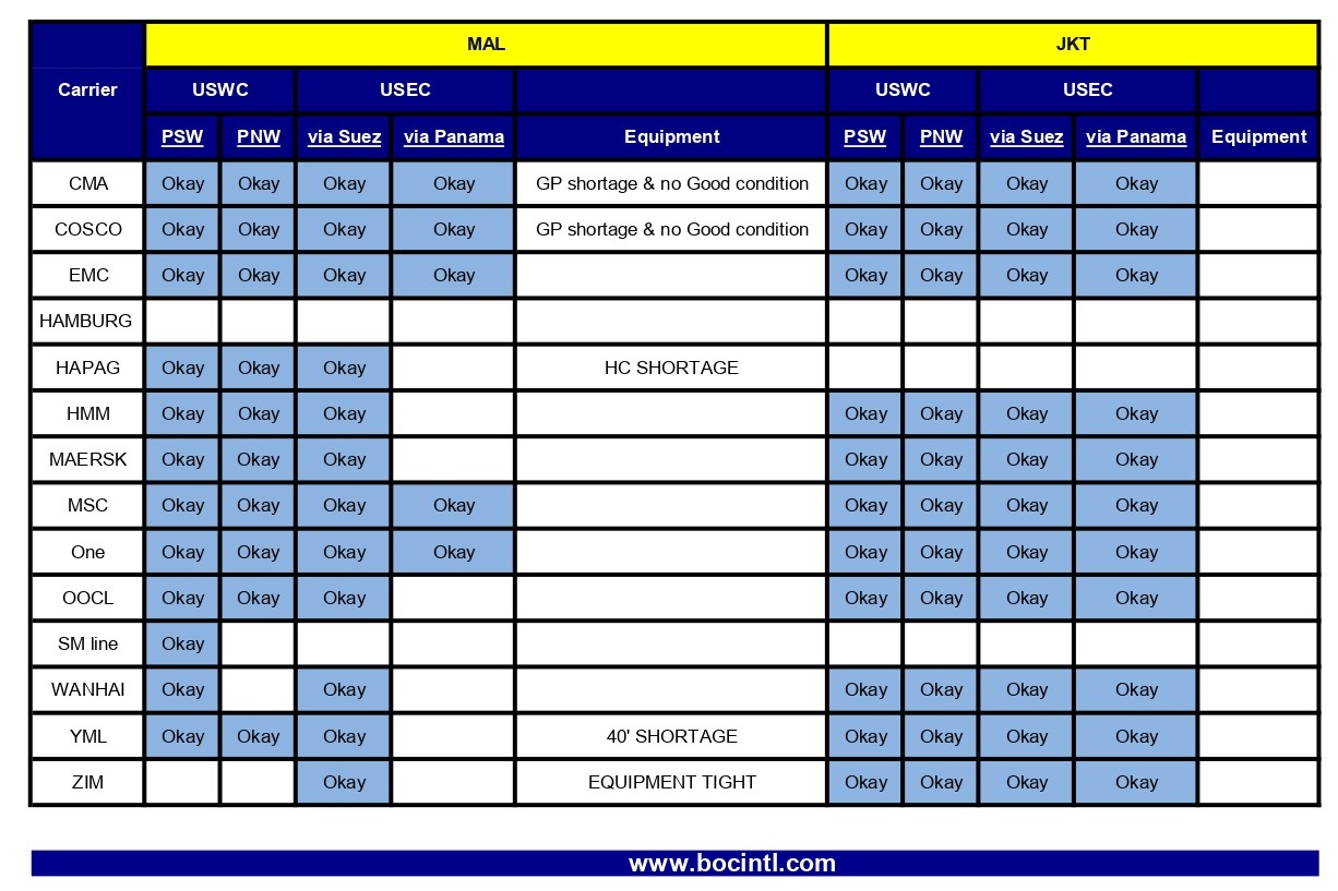 Please note: regardless of the status showing on the report, please reach out to your BOC Representative to discuss existing status. Space availability changes daily, even multiple times per day. This report is just a general guideline. We will always do everything we can to help you move your freight.